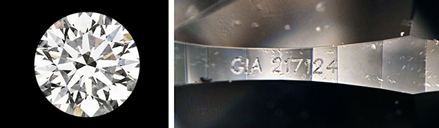 Kim Cương Nhân Tạo (Kim Cương Tổng Hợp) được khắc Mã Số Cạnh giả để khớp với Giấy Chứng Nhận Kim Cương Tự Nhiên